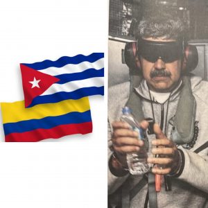 A combined photo of Cuba, Colombia flags and Venezuelan President Nicolas Maduro