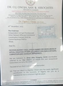 “It is without doubt that the above facts in relation to abuse of office, breach of the code of conduct for public officers, corrupt enrichment and embezzlement constitute gross acts of corrupt practices,” Dangote said in the petition, citing section 19 of the ICPC Act, which empowers the commission to investigate and prosecute such offences.