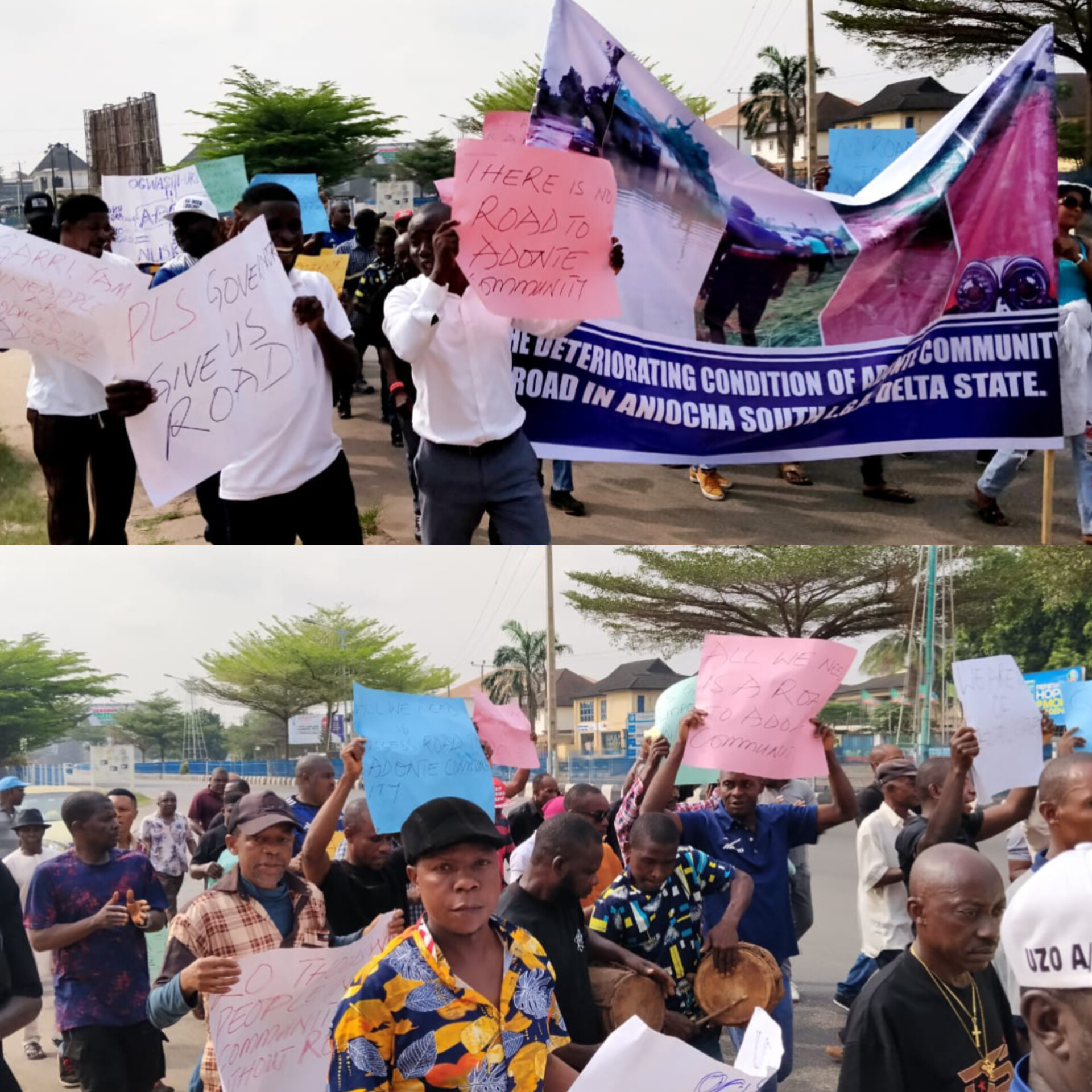 Residents of Adonte community in Aniocha South Local Government Area of Delta State on Tuesday staged a peaceful protest to draw the attention of the state government to the worsening condition of the Adonte road.