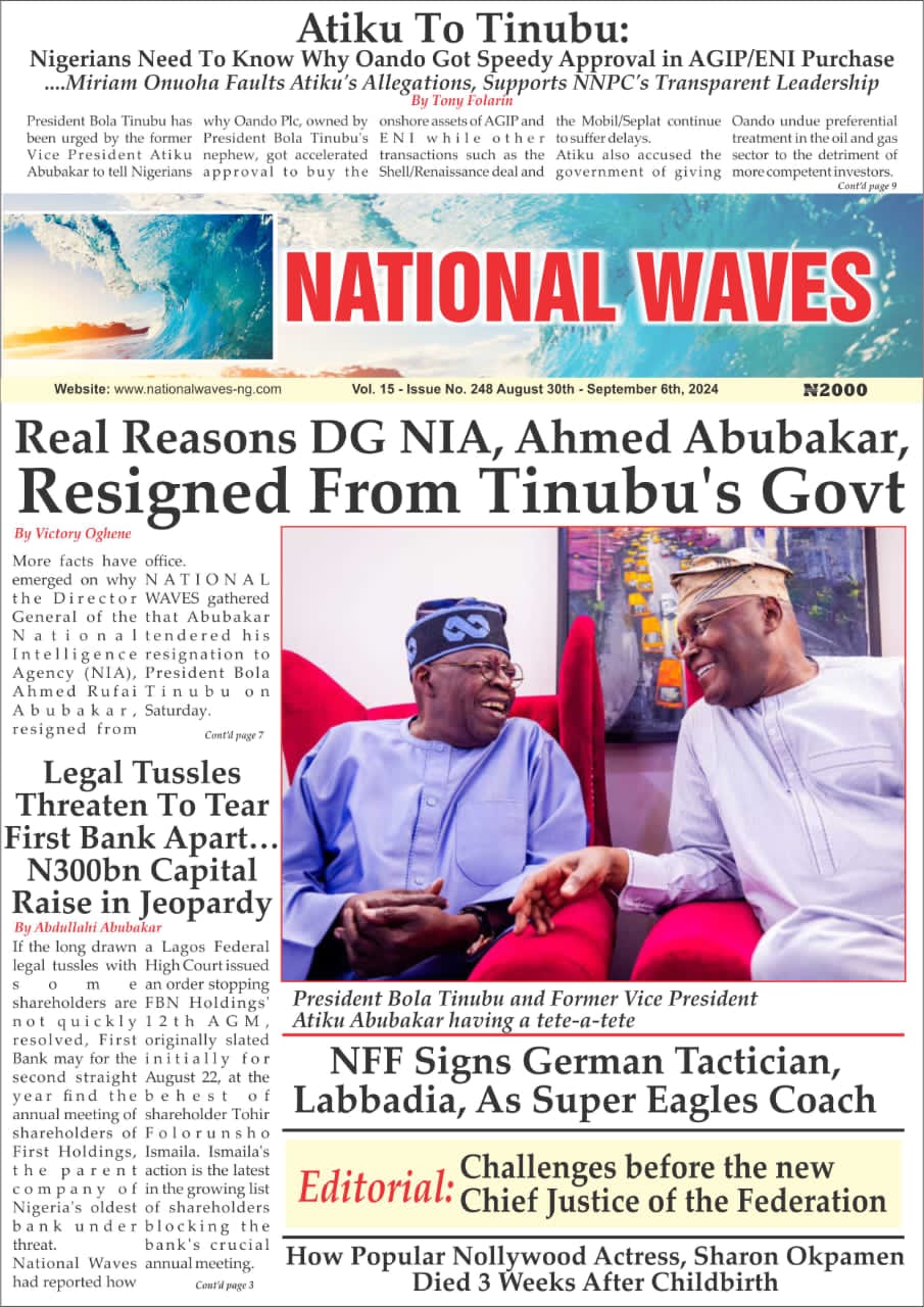 In the Abuja media landscape, it would be difficult to controvert the fact that NATIONAL WAVES is number one in spilling out scoops involving the high and low in society, and the doggedness with which the medium investigates this spiral of scandals in the past 16 years is amazing; and , further constitutes the core of the abiding faith the reading public has on the medium. It’s all about,” go and get me a copy of NATIONAL WAVES”.