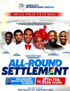 The leadership of God’s City International Church (GCIC), Abuja, has announced the postponement of its “Special Abuja Power Touch Night” scheduled for today, Friday, February 20, 2026 by one week.