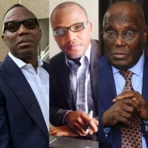 A combined photo of Omoyele Sowore, Nnamdi Kanu and Atiku Abubakar