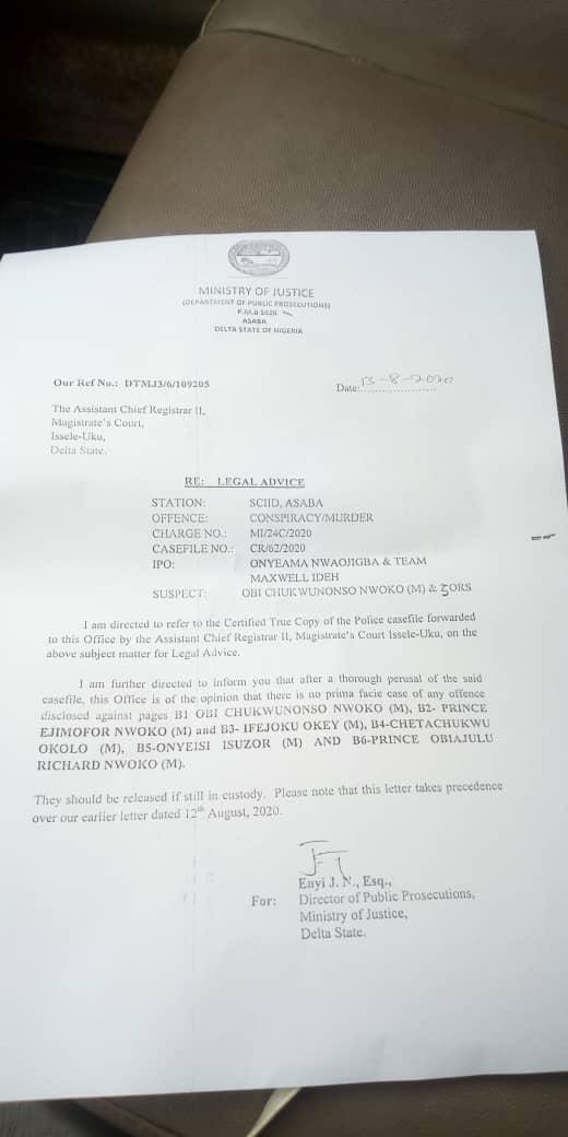 Contrary to Pamela’s submission that her father was arrested for land-related matter, the Obi of Idumuje Ugboko, Solomon Eziokwubundu Nwabuokei Nwoko said he was aware of the ongoing criminal prosecution for terrorism and murder of persons arising from the May 18th to 25th attacks and destruction in Idumuje Ugboko which is now popularly referred to as the 2017 mayhem in the community.