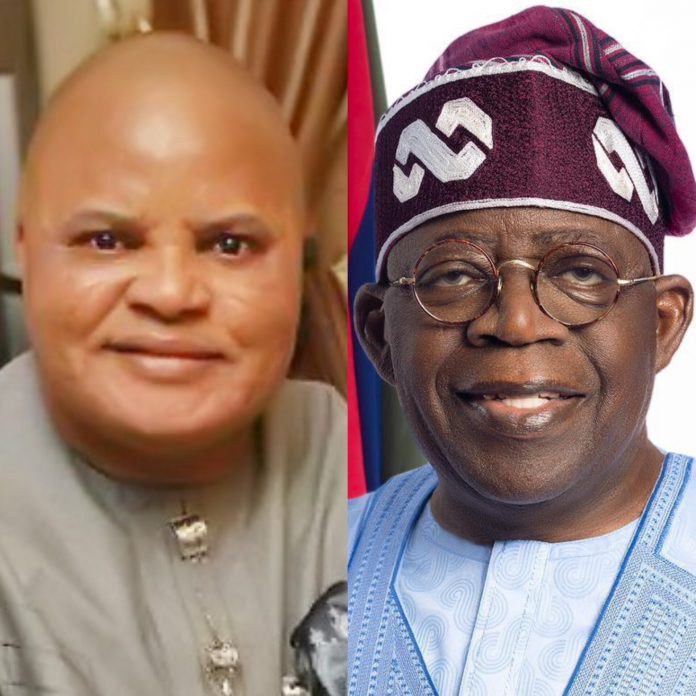 A combined photo of Senator Ifeanyi Araraume and President Bola Tinubu