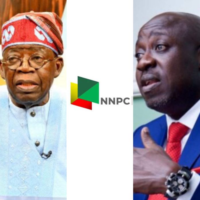 A combined photo of President Bola Tinubu, NNPCL logo and ADC spokesperson, Bolaji Abdullahi