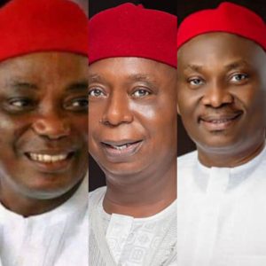 A combined photo of Late Peter Nwaoboshi, Ned Nwoko and Ndudi Elumelu