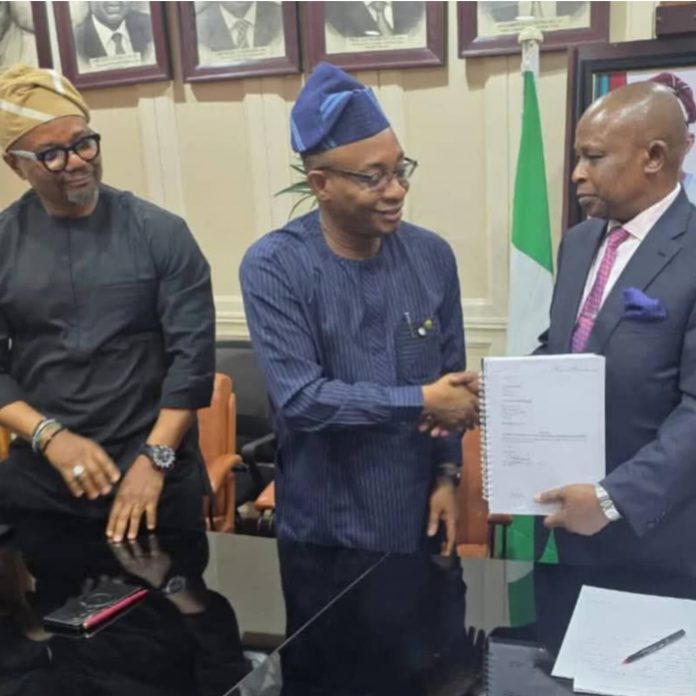 BPP DG Dr Adebowale Adedokun with the Attorney-General of the Federation and Minister of Justice, Prince Lateef Fagbemi. On the left is one of the lawyers that led BPP’s team, Basil Udotai