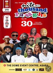 As you read this, the Delta State capital, Asaba is fully charged with torents of electrifying neurons to celebrate the grand finale of the Nite of a Thousand Laughs 30th anniversary tour.