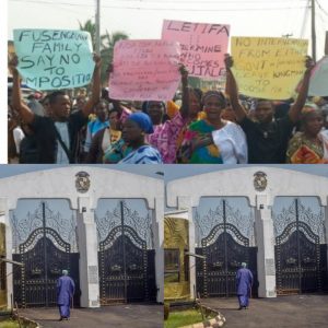 A combined photo of protesters at Ijebu and Awujale palace front gate