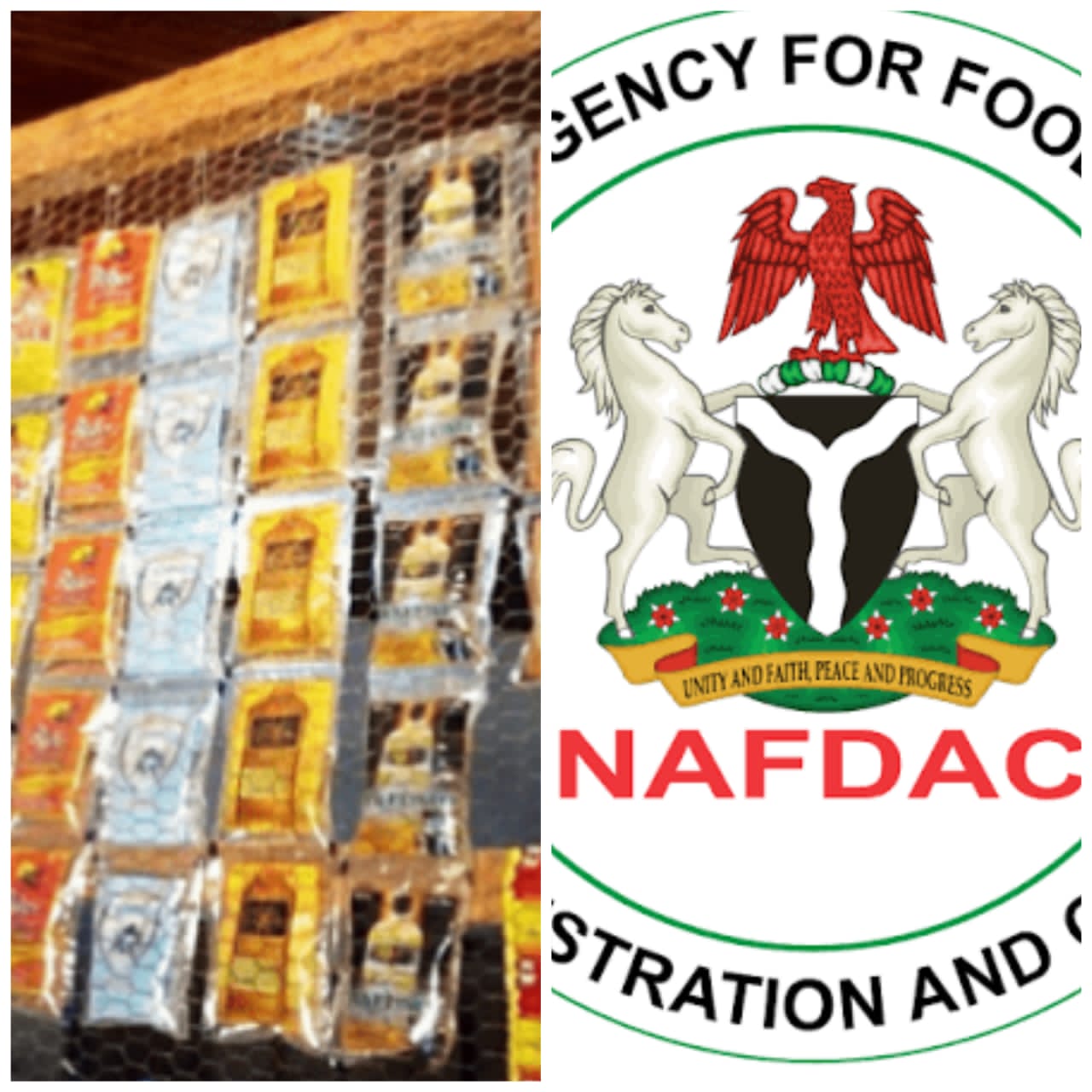 A combined photo of Sachet Alcohol and NAFDAC logo