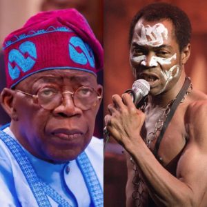 A combined photo of President Bola Tinubu and late Fela Anikulapo Kuti