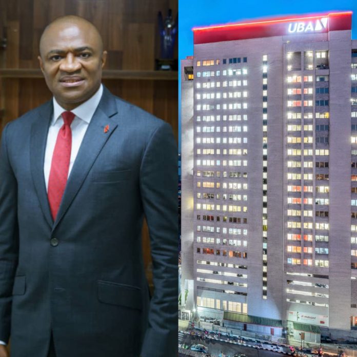 A combined photo of UBA Group MD/CEO, Oliver Alawuba and UBA headquarters