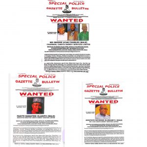 According to a police gazette the three executives are wanted by the office of the Inspector-General of Police (IGP) Monitoring Unit, Force Headquarters, Abuja.