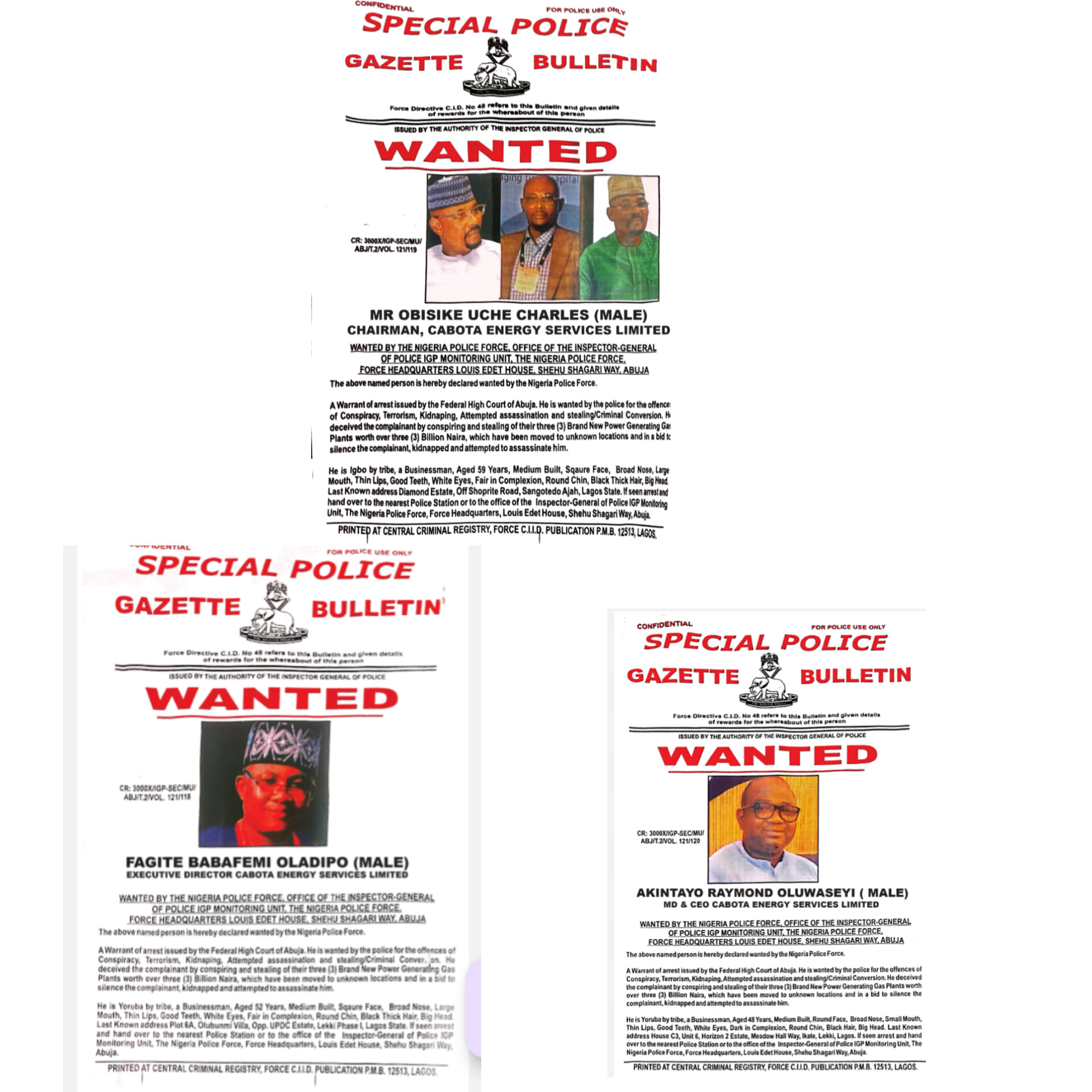 More facts have been uncovered on why the police declared the three directors of Cabota Energy Services Limited wanted. The directors are the company’s Managing Director/Chief Executive Officer, Akintayo Raymond Oluwaseyi; its Chairman, Obisike Uche Charles; and Executive Director, Fagite Babafemi Oladipo.